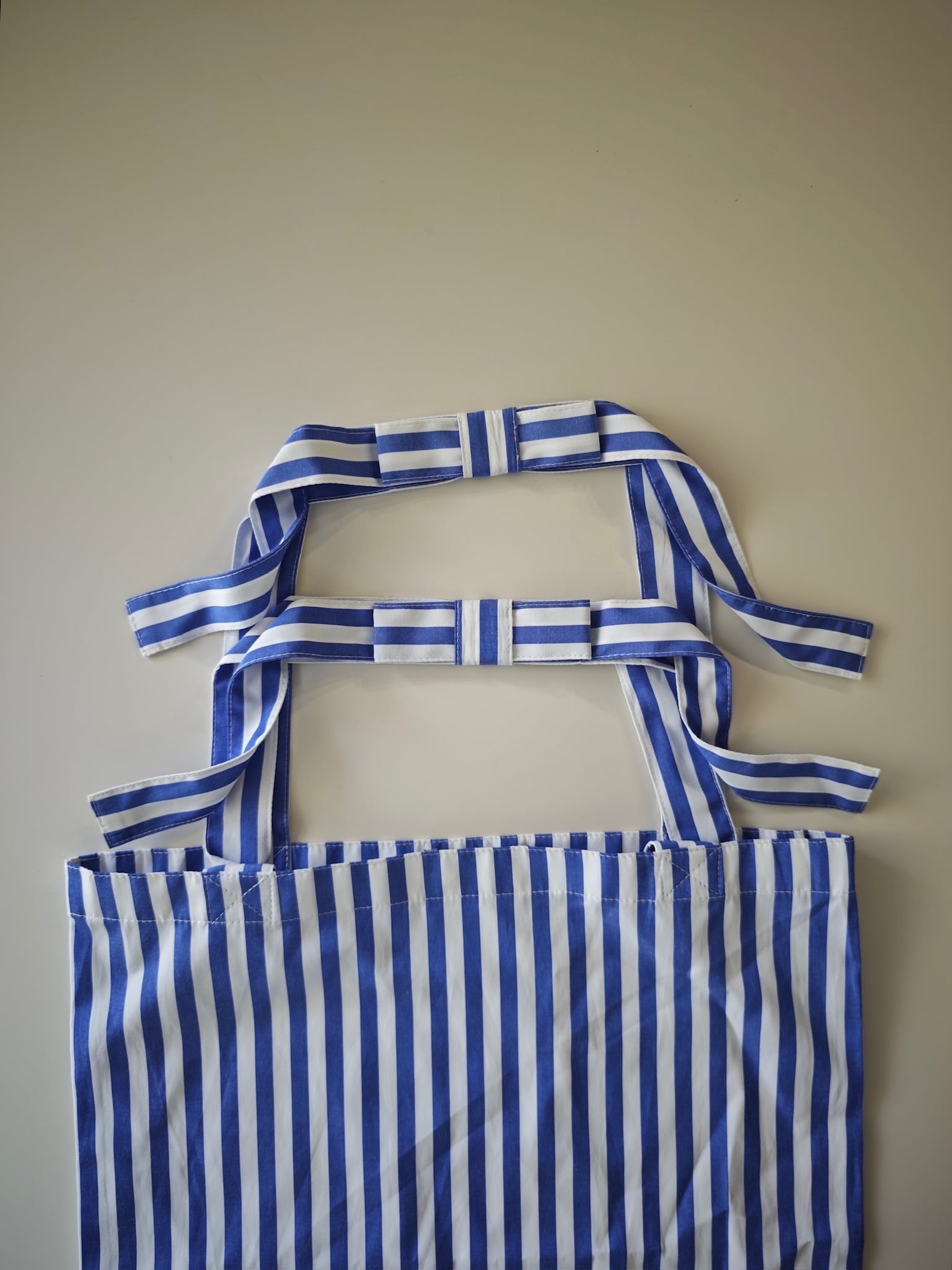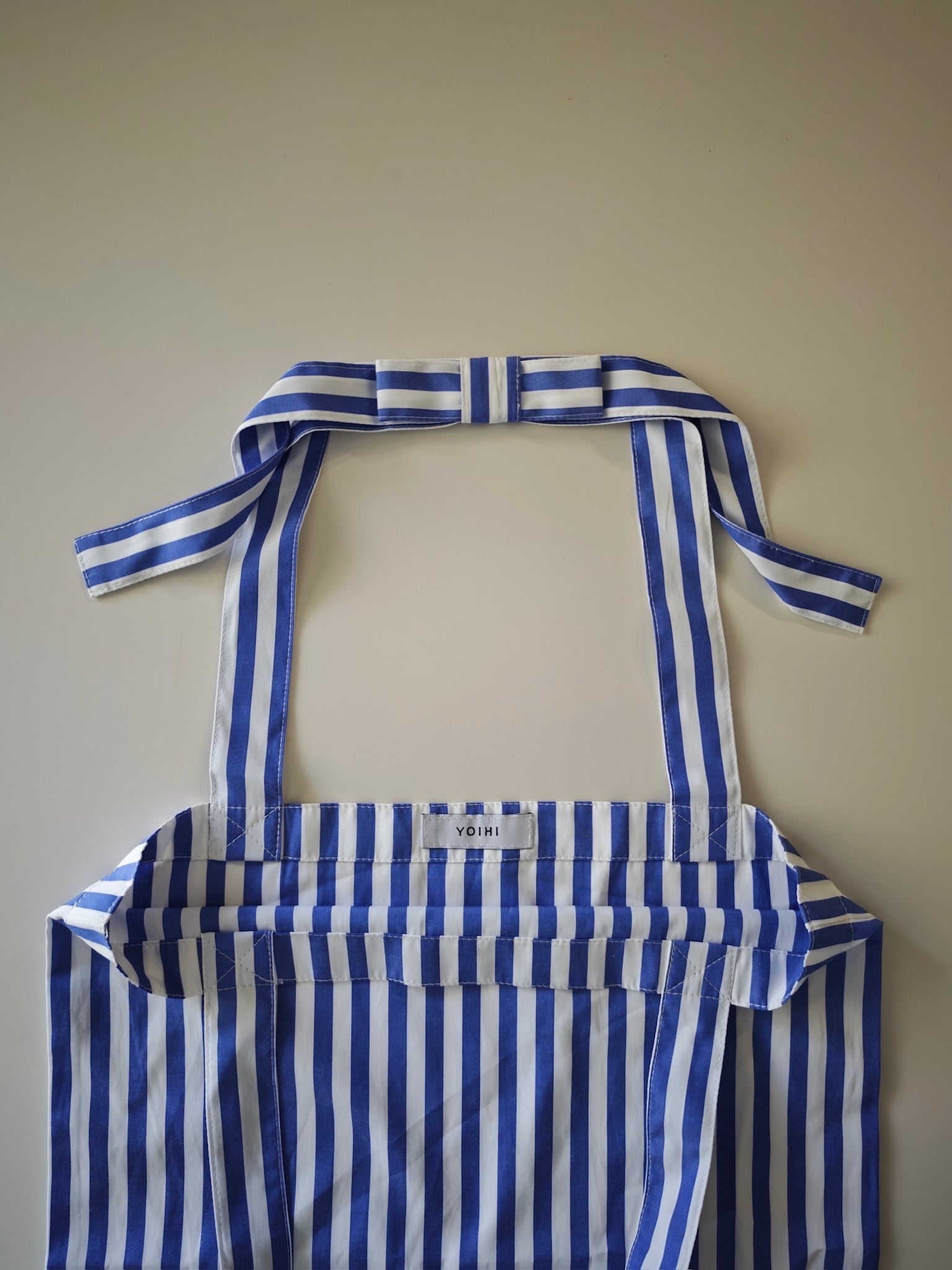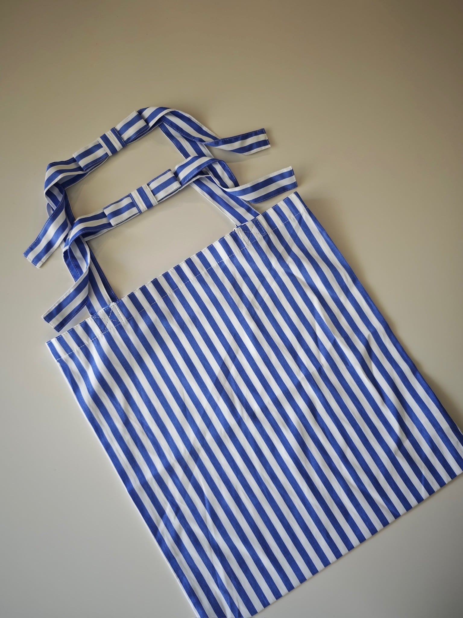 こだわりのギンガムチェック&ブルーストライプの生地を探し続けていたんですが、やっとこれだ!という生地に出会えたので商品化することができました。